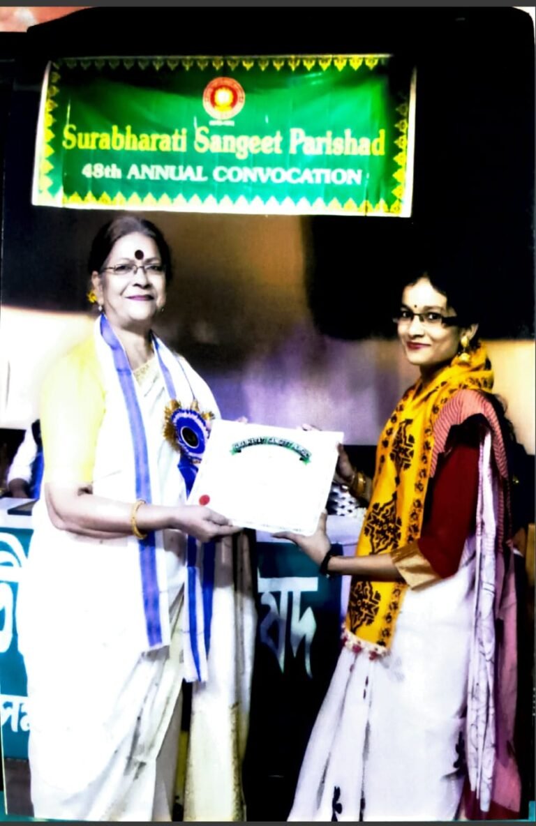 Studentsনৃত্যশিল্পী পলি গুহ ছাত্রীদের সার্টিফিকেট প্রদান করছেনInfo@SURABHARATISANGEETPARISHADALUMNI.inJuly 19, 2025