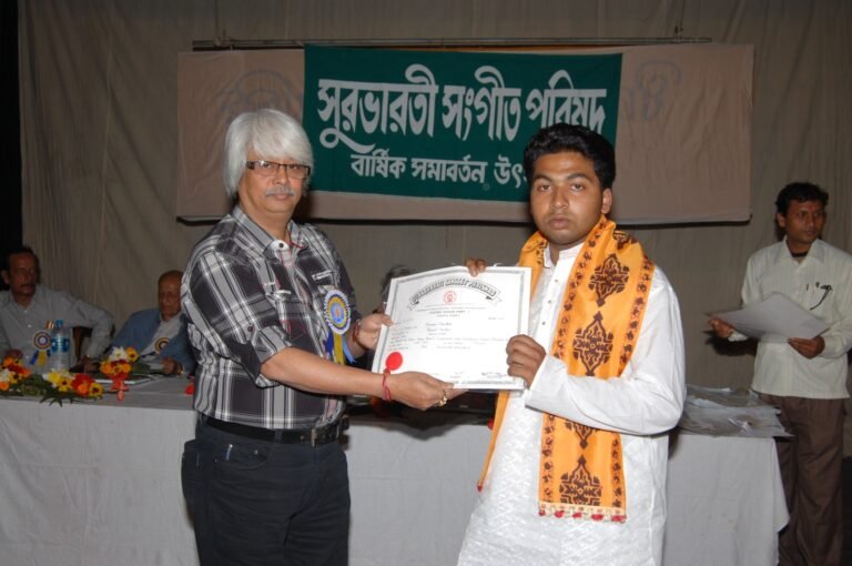 Studentsচিত্র পরিচালক হরনাথ চক্রবর্তী ছাত্রদের সার্টিফিকেট প্রদান করছেনInfo@SURABHARATISANGEETPARISHADALUMNI.inJuly 19, 2025